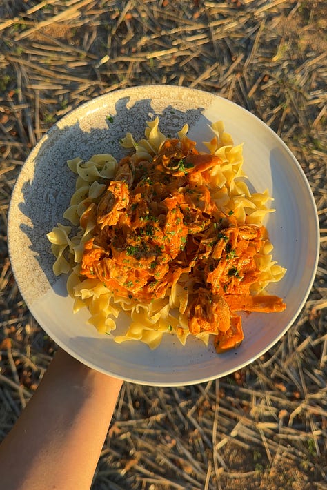 That said, this dish looks like chicken paprikash, has mostly the same ingredients as Swedish stroganoff, and tastes ever-so-slightly like vodka pasta—isn’t food fun???