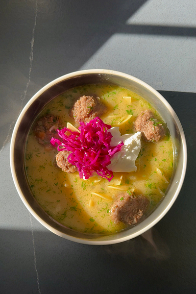 Swedish Meatball Soup with Egg Noodles