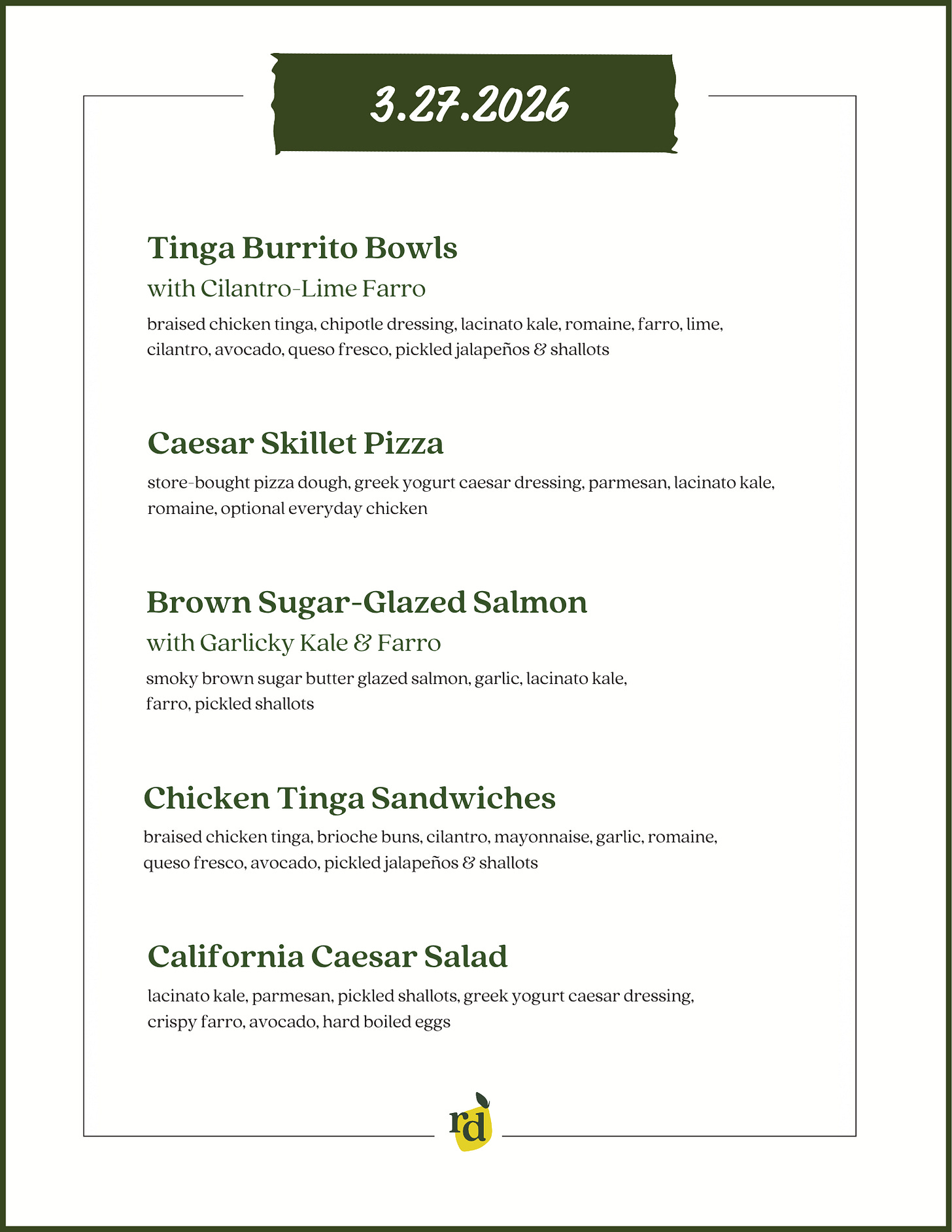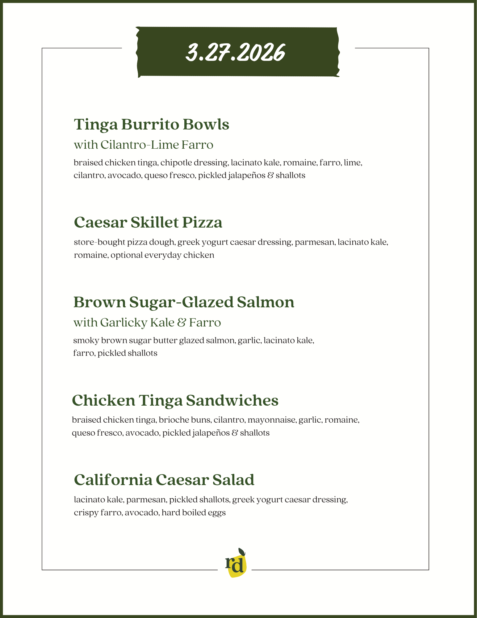 Access to hundreds of individual recipes (sauces, marinades, breads, grains, meats, etc.) and 100+ weekly dinner menus can be found below: